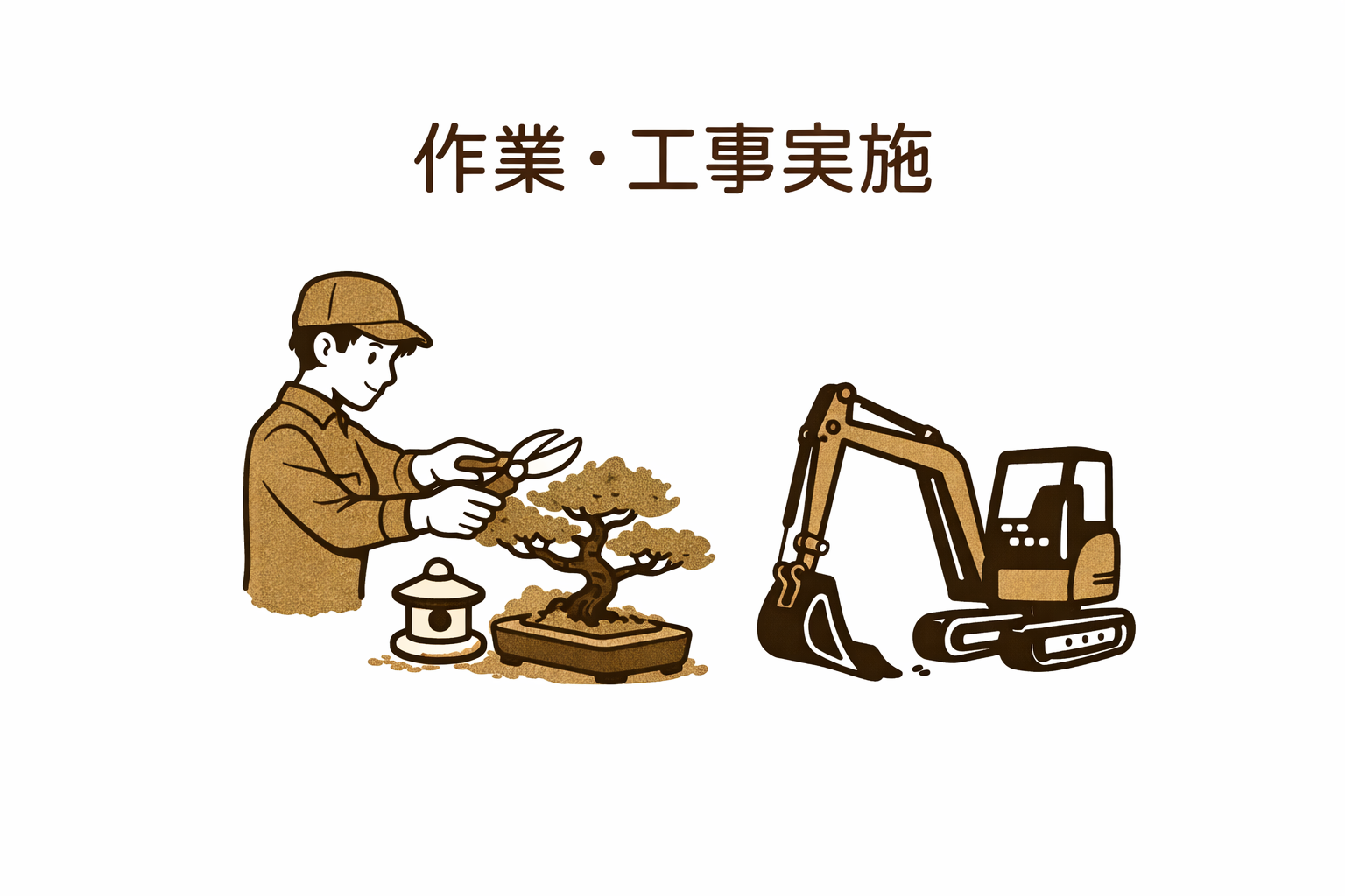 お見積りを見ていただき、お仕事をご依頼いただけましたら、作業の日程調整、細かい打合せを行います。作業のお立合い・見学はご自由にお過ごしください。気になる点がありましたらお気軽にお申し付けください。