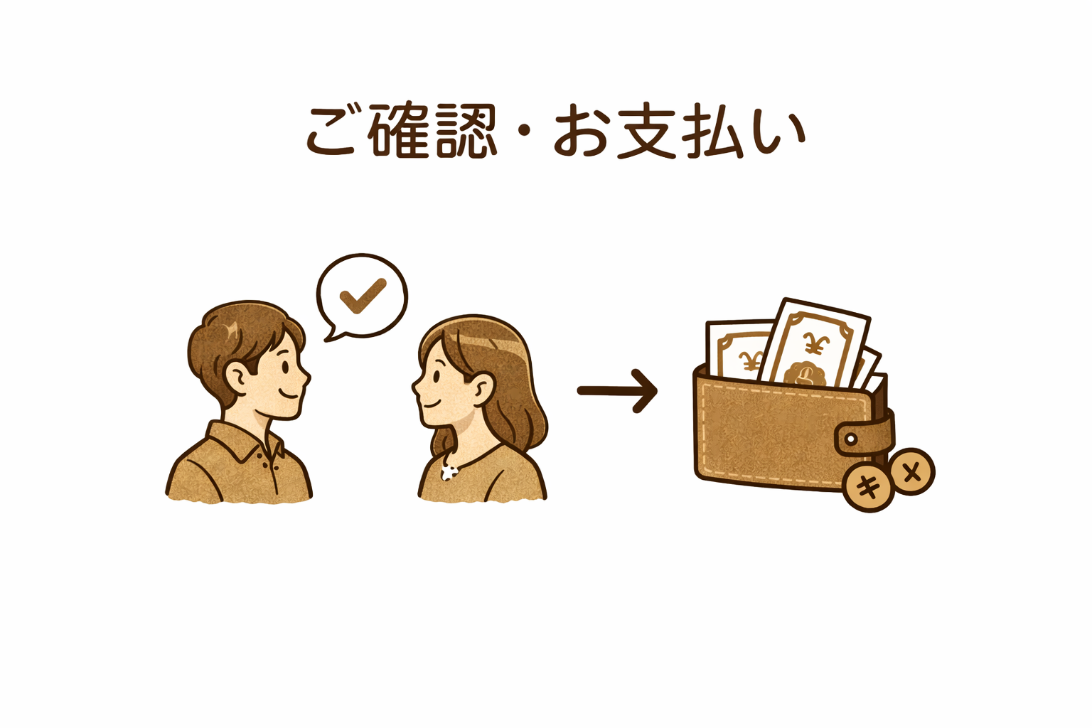 作業が無事完了しましたら、仕上がりの確認をしていただきます。料金のお支払いはお振込み・現金でのお支払いとなっております。