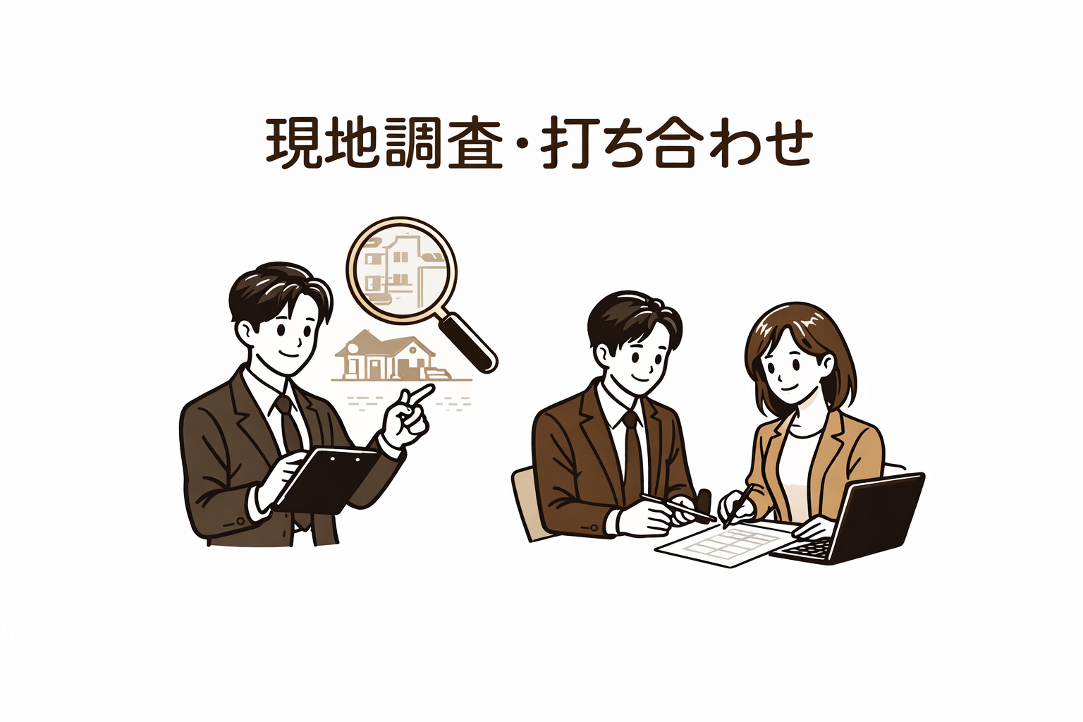 実際に現場に向かわせていただきます。そこでご依頼内容やご要望をお聞きし、打合せを行わせていただきます。お客様の気になる点すべてお聞きします、遠慮なくご相談ください。